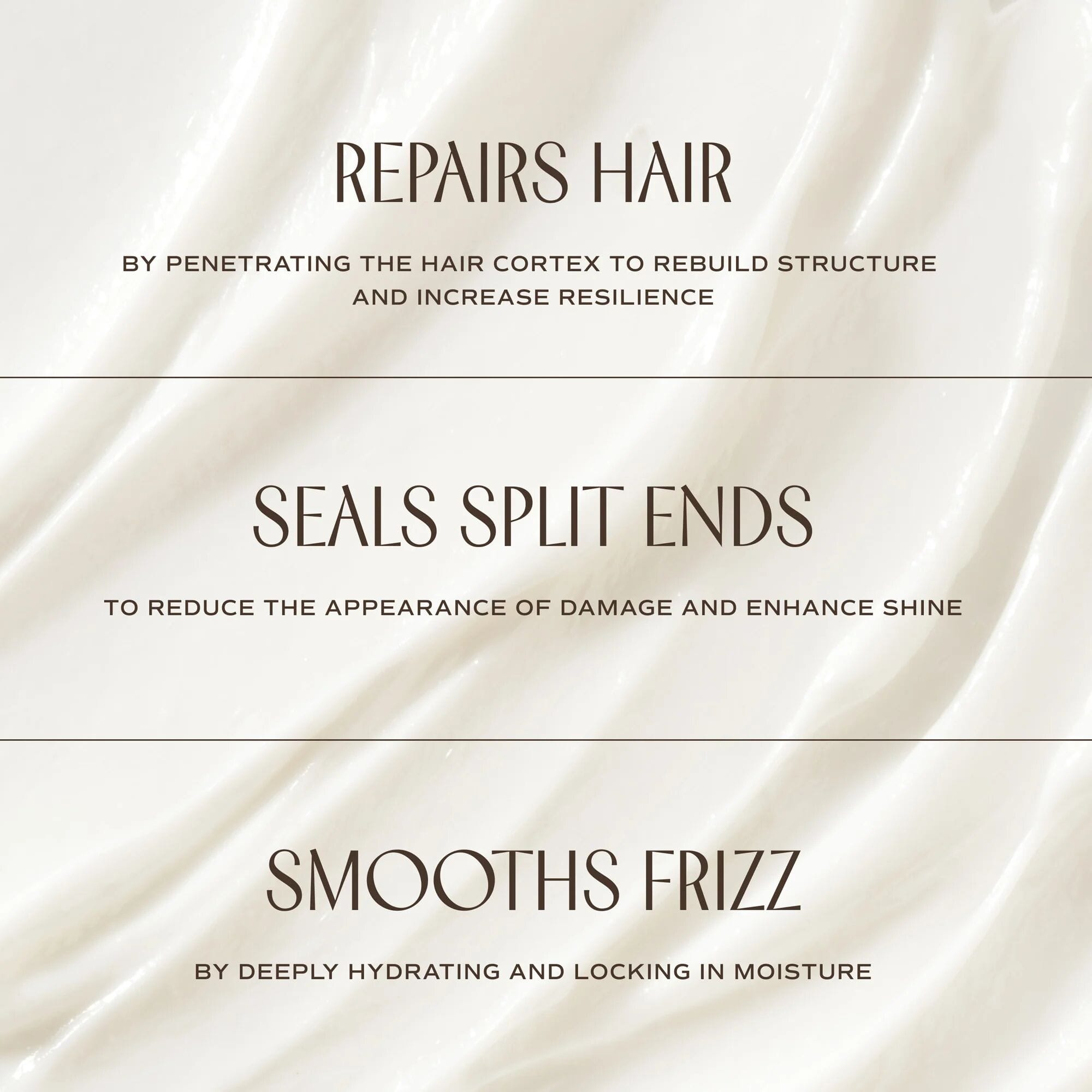 Strengthen and reverse signs of dry, damaged or brittle hair with this deeply repairing treatment mask that builds bonds and fortifies strands. Hydrolyzed Moringa Protein repairs hair from the inside out by bonding with keratin sites to restore structure and strength. Vitamin C and Tamanu Oil minimize breakage and seal split ends for a healthy, shiny finish.